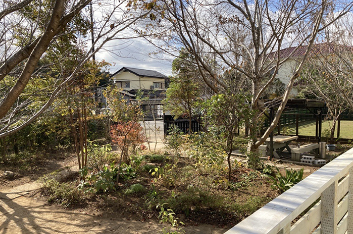 そのときのお庭を利用して、施設からも様々な植物が見えるようにしました。